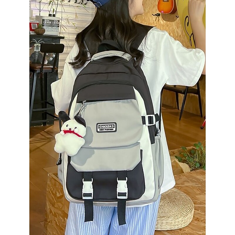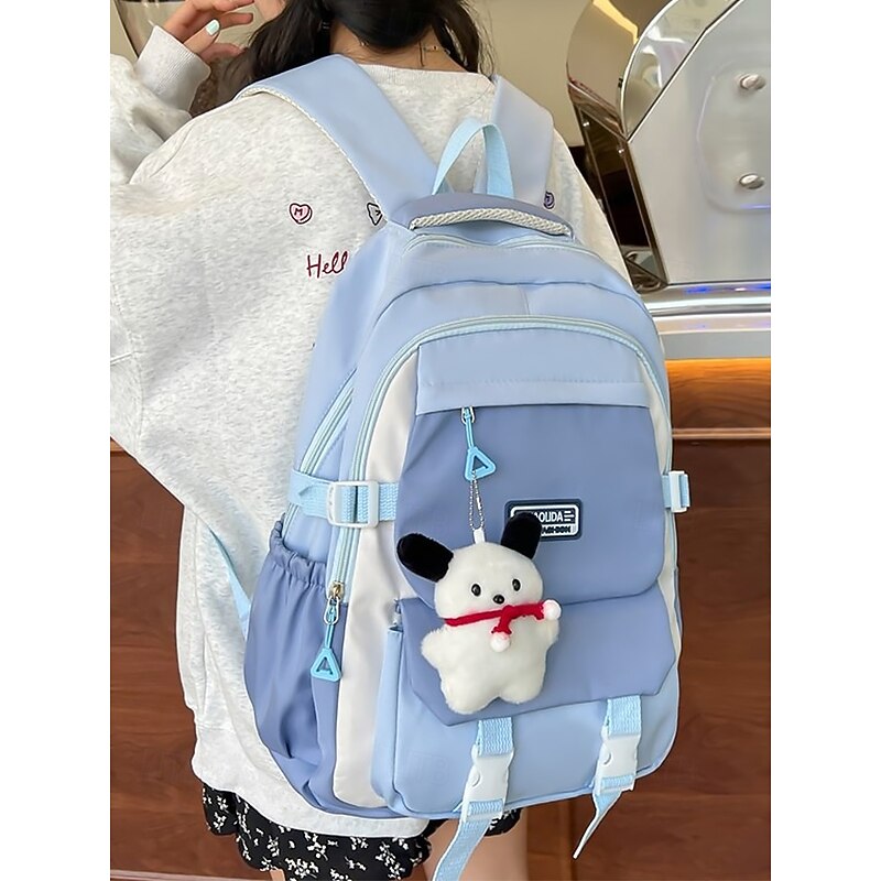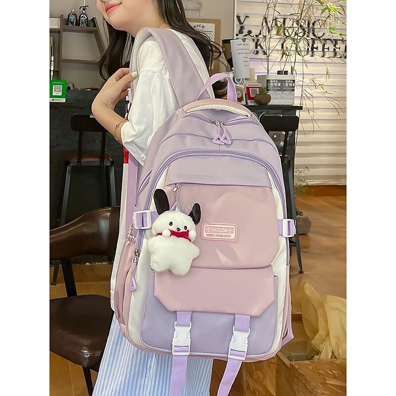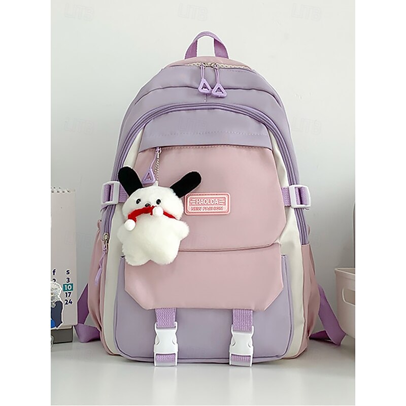 $19.99 - Teenage Colorblock Backpack with Plush Keychain – Multi-Pocket School Bag for Girls and Boys, Ideal for Middle School, High School and Daily Use Black Blue Purple 2025. Shop for cheap College Backpacks online? Buy at lightinthebox.com on sale today!