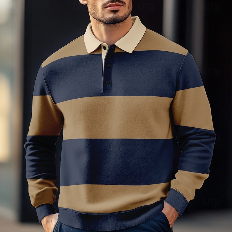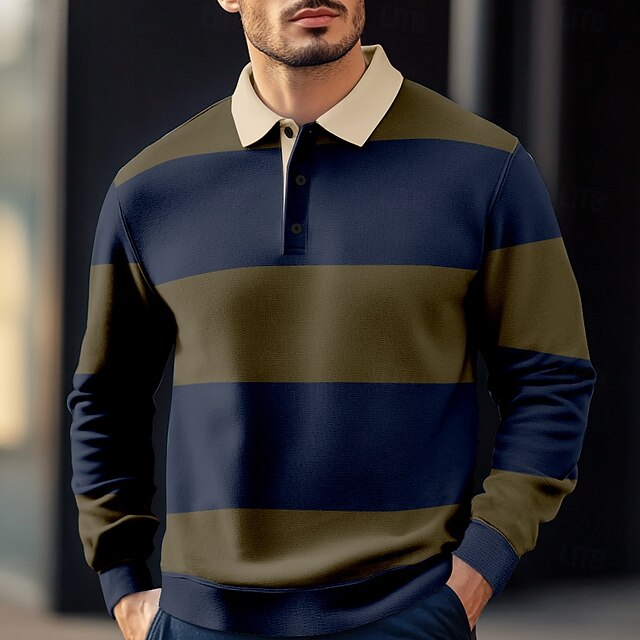 More information about Men's Stripes Rugby Polo Long Sleeve Polo Shirts Collared Shirts Casual Outdoor Athleisure 3D Print Spring Fall Winter Red Blue Brown
