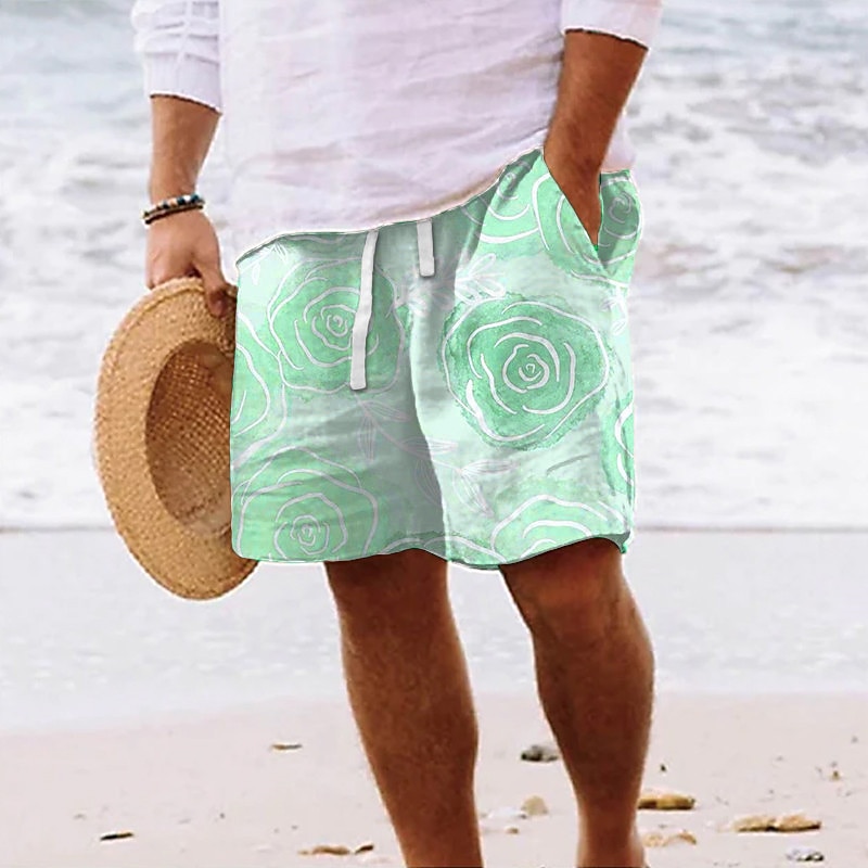 Men's Graphic Leaf Flower / Floral Summer Shorts Beach Shorts Baggy Shorts Mid Waist Streetwear Hawaiian Designer Casual Daily Holiday Drawstring Elastic Waist Designer Clothing Apparel 11