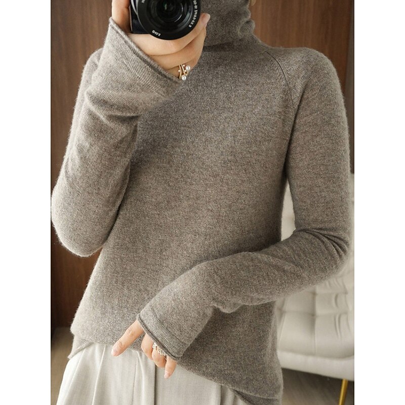 More information about Women's Sweater Pullover Sweater Jumper Casual Soft Pure Color Ribbed Turtleneck Knitted Long Sleeve Regular Tops Knit Outdoor Daily Weekend Pink Camel Fall Winter