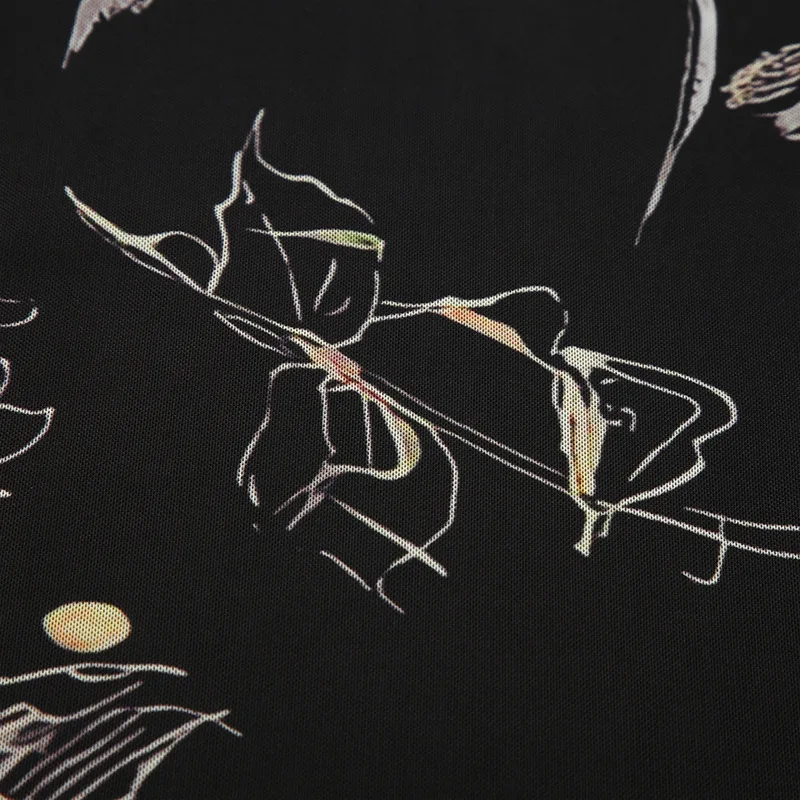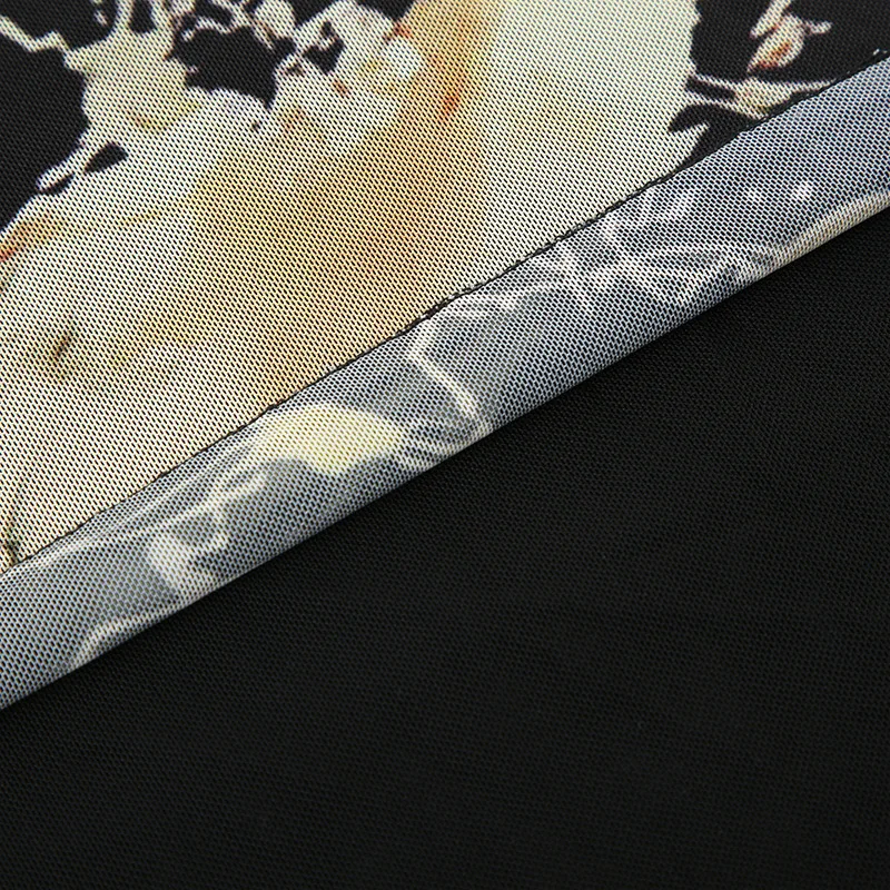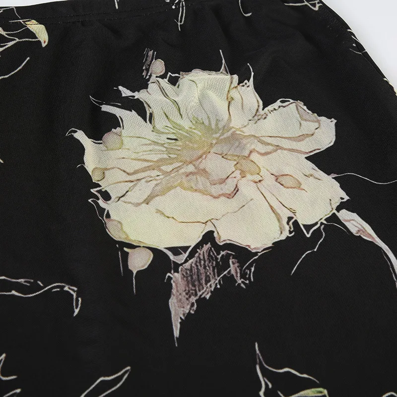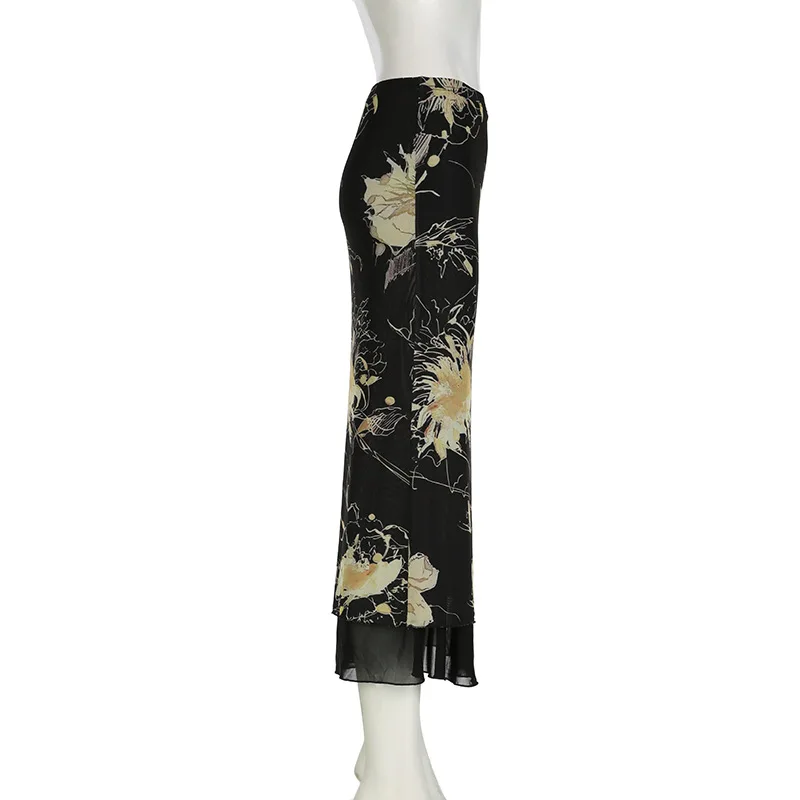 Goth Dark Y2K Aestheics Double Layer Mesh A-line Skirt Women Fashion Florals Print Slim Skirts Fairy Streetwear Gothic Bottoms