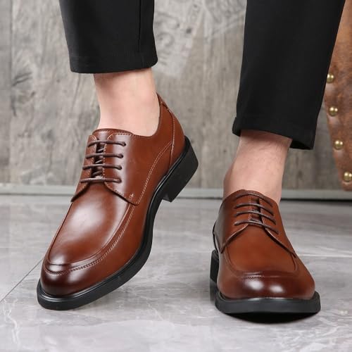Formal Shoes Dress Oxford for Men Lace Up Pointed Toe Heel Non Slip Low Top Rubber Sole Shoe for Casual Wedding Party Prom Evening Faux Leather 6