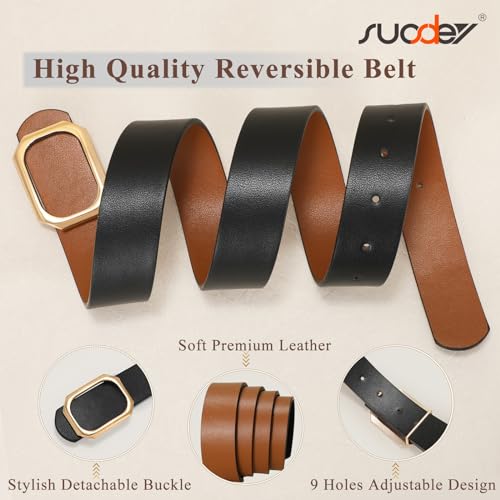 sought-after ! SUOSDEY Women Reversible Leather Belt for Jeans Pants Dresses Ladies Waist Belt, 1.3" Width
