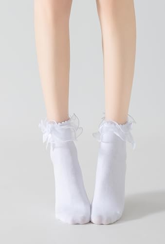 SRYL Women Lace Ankle Socks Ruffle Frilly Cotton Socks Trim Lace,Anklet socks Dress Socks Women or Girls,H04 3