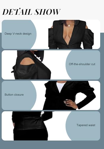 • Cold Shoulder Detail: The blazers for women is cut with a cold shoulder, revealing part of the shoulder, adding uniqueness and style to the blazers for women business casual