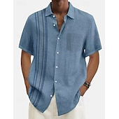 More information about Men's Summer Shirt Casual Shirt Beach Shirt Button Up Shirt Blue Green Short Sleeve Pattern Stripes Lapel Vacation Hawaiian Clothing Apparel Polyester Fashion Casual Comfortable