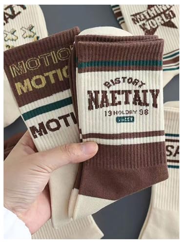 HOT ! Men's 5 Pairs Vintage Striped Mid Calf Socks Y2K Color Block Ribbed Casual Athletic Socks