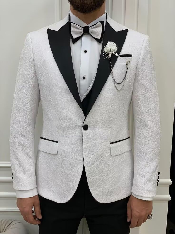 More information about Men's Jacquard Tuxedo Suits Slim Fit 3 Piece Suits Double Breasted Blazer Suit Wedding Tuxedos Suit for Men