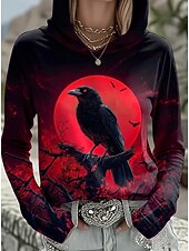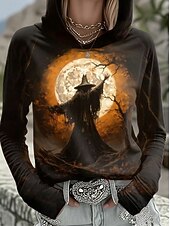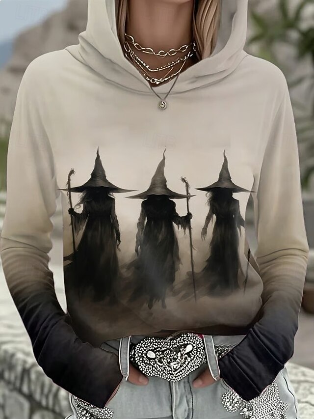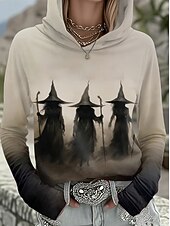 More information about Halloween Women's Pullover Hoodie Sweatshirt Witch Graphic Vintage Fashion Western Long Sleeve Hooded Regular Tops Street Dailywear Holiday Print Black Wine Brown Khaki Fall Winter