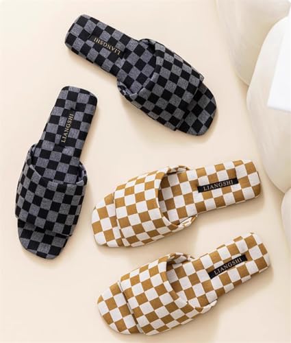 Luxurious Chessboard Sandals for Women Men High Class Open Toe Slippers Elegant House Shoes Indoor Outdoor 6