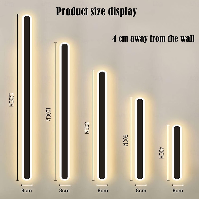 Modern Outdoor Waterproof LED Wall Sconce 15.7-70inch Color Light Optional IP65 Black Acrylic Wall Light Fixture Frosted Elegant AC85-265V 8