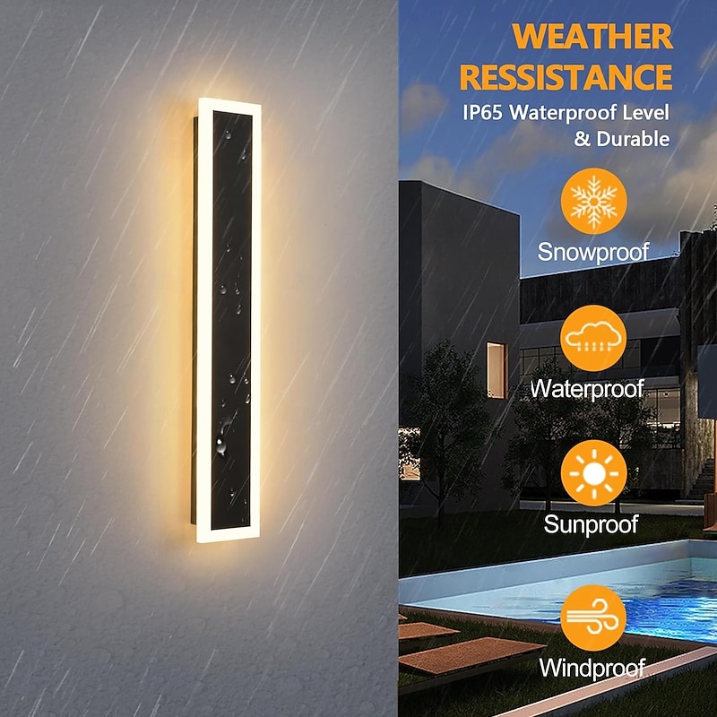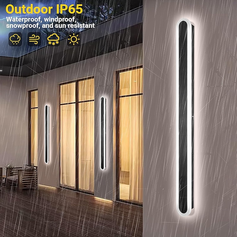 More information about Modern Outdoor Waterproof LED Wall Sconce 15.7-70inch Color Light Optional IP65 Black Acrylic Wall Light Fixture Frosted Elegant AC85-265V