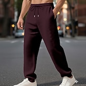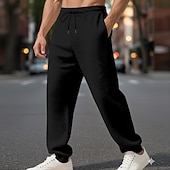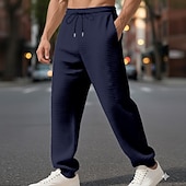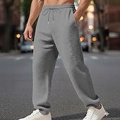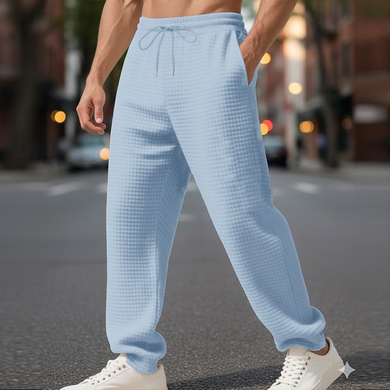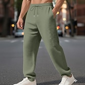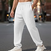 More information about Men's Waffle Sweatpants Trousers Straight Leg Sweatpants Drawstring Front Pocket Plain Comfort Full Length Outdoor Work Daily Fashion Streetwear Black White Stretchy