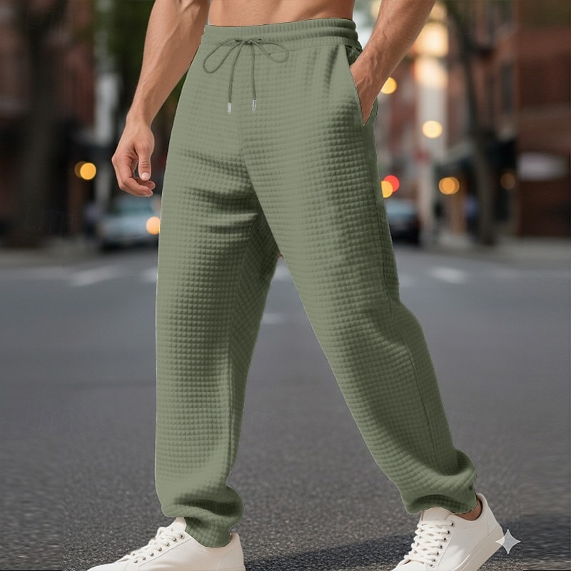 HOT ! Men's Waffle Sweatpants Trousers Straight Leg Sweatpants Drawstring Front Pocket Plain Comfort Full Length Outdoor Work Daily Fashion Streetwear Black White Stretchy