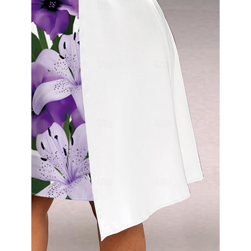 Women's Midi Dress A Line Dress Casual Daily Regular Fit Floral Long Sleeve V Neck Purple Summer Spring Fall 7