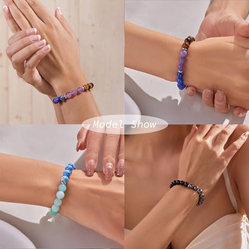 • Beaded Bracelets for Women: Indulge in the beauty of perfectly cut and polished natural stone beads, each measuring a classic 8mm. With a smooth surface and comfortable fit, these waterproof and well-made crystal bracelets are designed at 7.5 inches and feature an elastic design that can be adjusted to fit wrists up to 8.5 inches, ensuring a comfortable fit for most people