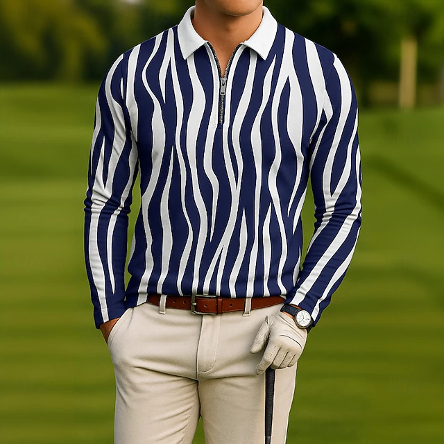 More information about Men's Geometric Golf Polo Long Sleeve Turndown Modern Leisure Sports & Outdoor Athleisure Casual Daily Zipper 3D Print Spring Fall Blue Purple Green