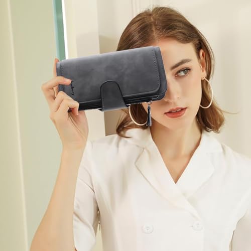 HOT ! Women's Long Leather Wallet RFID Blocking Cash ID Credit Card Holder for Women Ladies Soft Clutch Wallet with Zipper Coin Pocket Fashion Purse (Dark Gray)