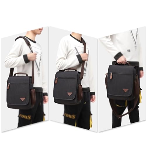 Casual Vintage Shoulder Bag, Canvas, Men Crossbody Bag, Rectangle, Multi Pocket, for Work Business Office Travel, 12.5in 5