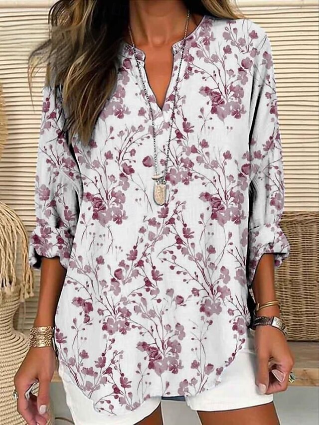 More information about Women's Shirt Floral Stylish Modern Long Sleeve V Neck Regular Tops Daily Holiday Buttons Print Pink Purple Green Beige Summer