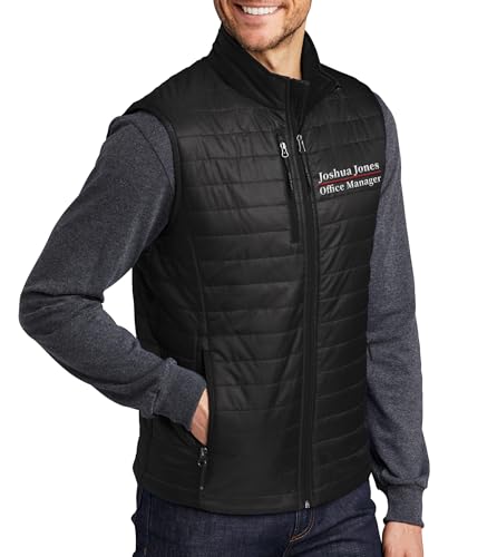 • Men's Custom Embroidered Puffy Vest Personalied Zip Up Packable Puffer Sleeves Vest For Men Add Your Text