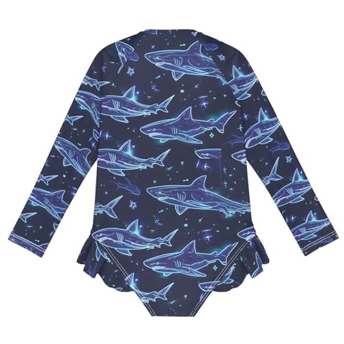 ALAZA Blue Shark Star Girls One Piece Swimsuit Long Sleeve Rash Guard Swimsuits UV 50+ Swimwear Zipper 1