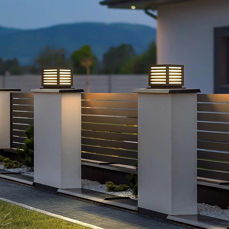 LED Outdoor Wall Lights Warm White 25cm Single Head Light Luxury Square Lawn Path Waterproof Post Light E26/E27 Metal Villa Garden 110-240V 10