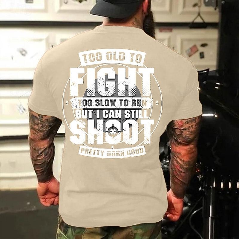 HOT ! Men's Short Sleeve Graphic T-Shirt - 'Too Old To Fight, Too Slow To Run, But Still Shoot Pretty Darn Good' Humorous Lifestyle Tee