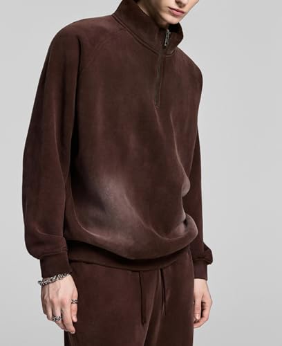 • Design:Fleece Vintage hoodless sweatshirt for men, oversized sweaters, drop shoulder collar, slight stretch, lined, long sleeve tops,fall outfits for women,fashion and casual style,It's really soft inside,standard size, a sweatshirt that goes with everything.Long sleeve men zip up hoodies/fall clothes/winter clothes/winter fashion/winter outfits/pullover sweatshirt/solid color/full zipper sweatshirt/loose fit style