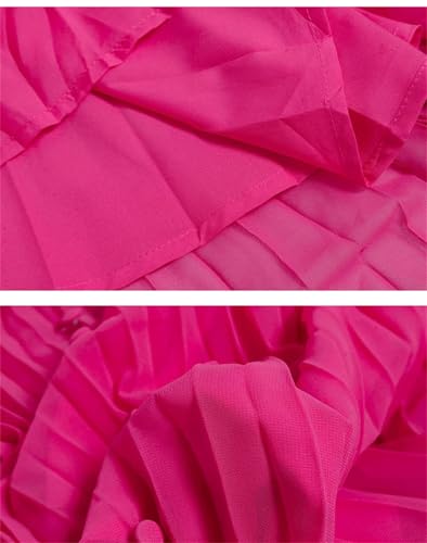 Women's Sleeveless Pleated Fuchsia Midi Dress Retro Office Flowing High Waist Dress 6