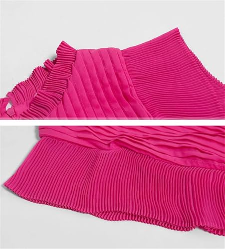 HOT ! Women's Sleeveless Pleated Fuchsia Midi Dress Retro Office Flowing High Waist Dress