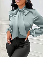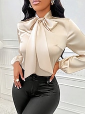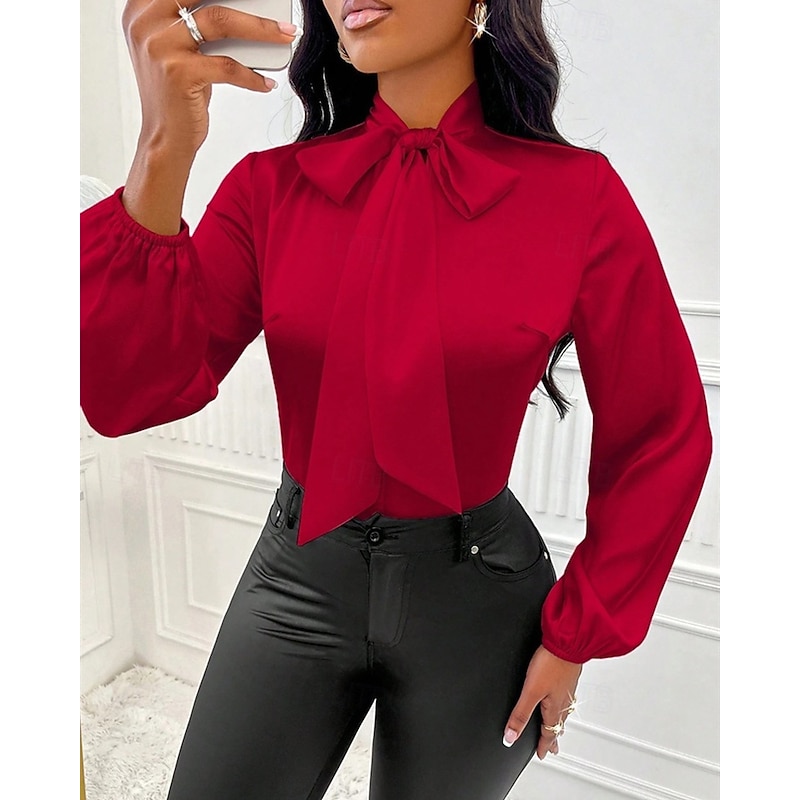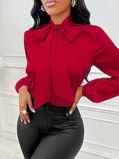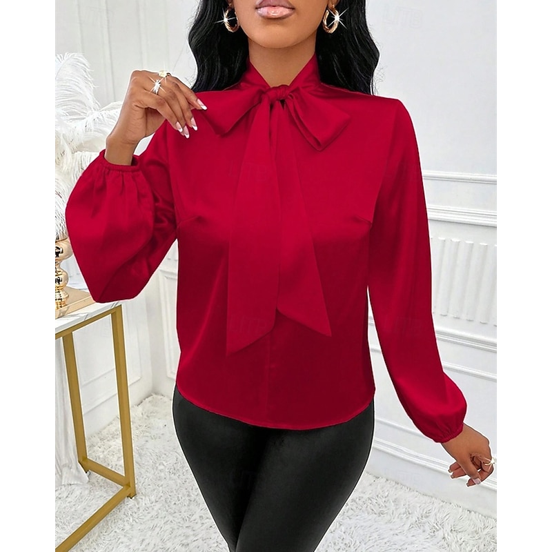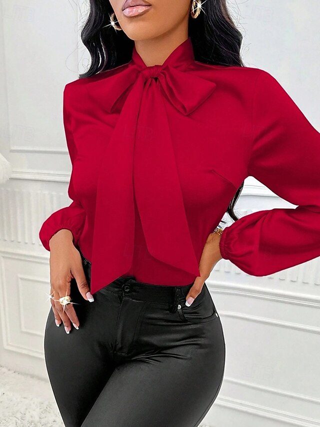 More information about Women's Shirt Elegant Dressy Satin Solid Color Elegant Stylish Basic Long Sleeve Tie Neck High Neck Regular Tops Daily Going out Bow Red Spring Fall