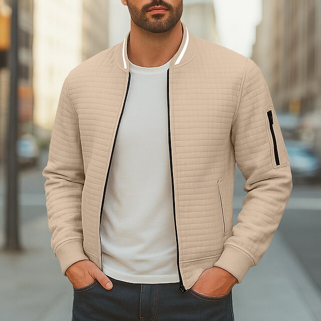 Men's Sweatshirt Waffle Sweatshirt Tactical Black White Wine Army Green Navy Blue Standing Collar Plain Textured Sports & Outdoor Casual Daily Streetwear Cool Sportswear Spring &  Fall Clothing 17