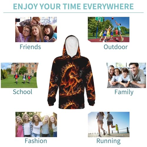 Fire Horse Kids Pullover Hoodies Boys Sweatshirts Girls Athletic Clothes with Pocket 4