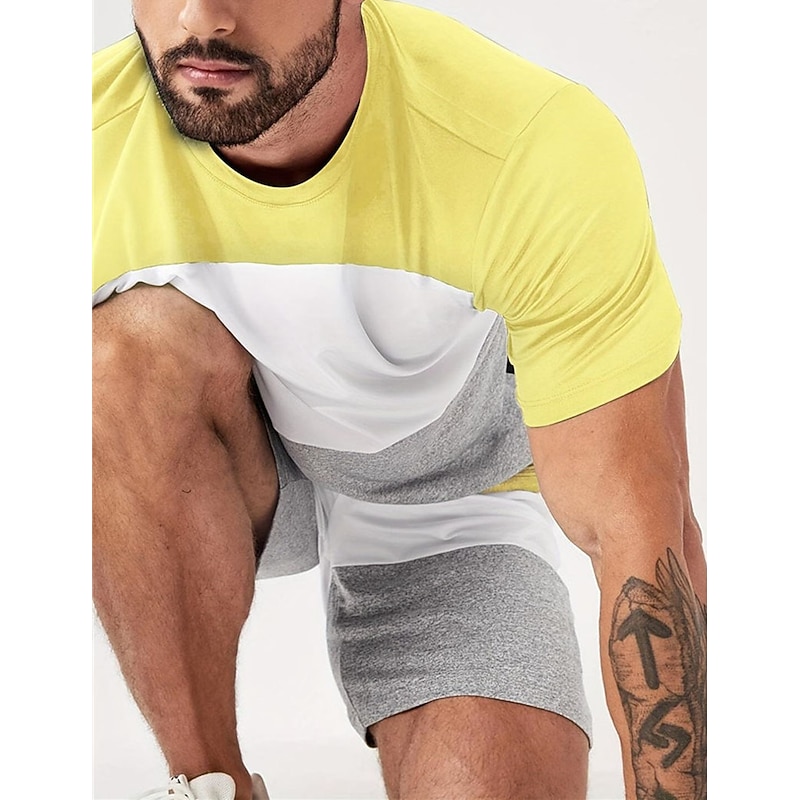 Men's T-shirt Suits Tracksuit Tennis Shirt Shorts and T Shirt Set Short Sleeves Crew Neck Summer Color Block Gymnatics Casual 2 Piece Vacation Daily Wear Activewear Yellow Red Blue Top Tee for Men 15