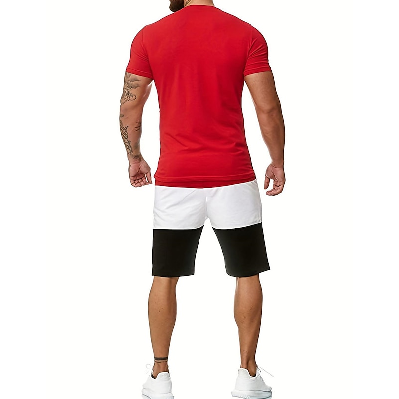 More information about Men's T-shirt Suits Tracksuit Tennis Shirt Shorts and T Shirt Set Short Sleeves Crew Neck Summer Color Block Gymnatics Casual 2 Piece Vacation Daily Wear Activewear Yellow Red Blue Top Tee for Men