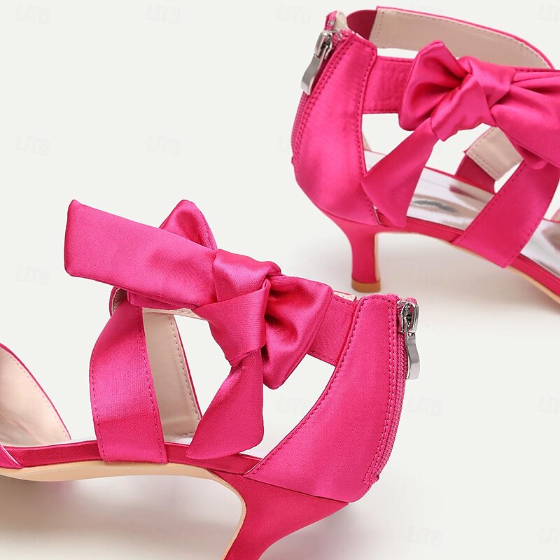 More information about Women's Wedding Shoes Bridal Shoes Bowknot Kitten Heel Open Toe Satin Zipper Black White Ivory