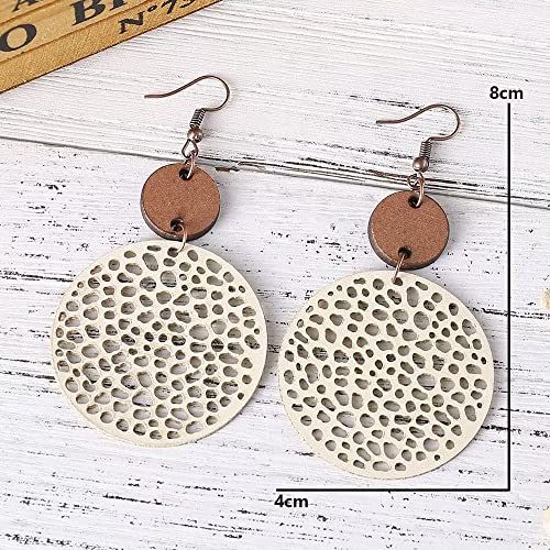 More information about Wooden Round Geometric Earrings Retro Hollow Out Circle Earrings Big Lightweight Statement Jewelry Suitable for Women