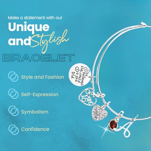 HOT ! Personalized Sweet 16 She Believed She Could So She Did Birthstone and Initial Letter Charm Bangle Bracelet- Sweet 16 Jewelry - Sweet Sixteen Gift- Perfect Birthday Gift For Girls