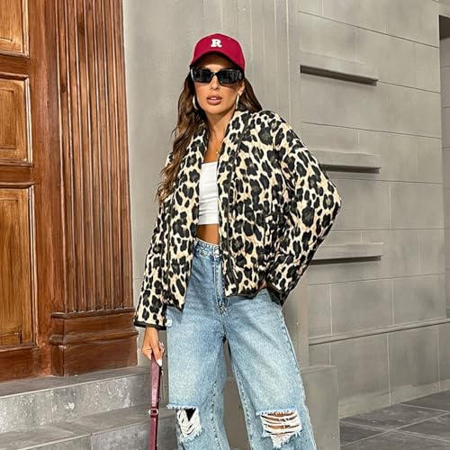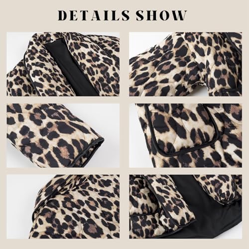 • Design: The cropped puffer jacket women is designed with long sleeves, crop length, drop shoulder, leopard print design, the quilted pattern adds a stylish touch while providing insulation to keep you warm