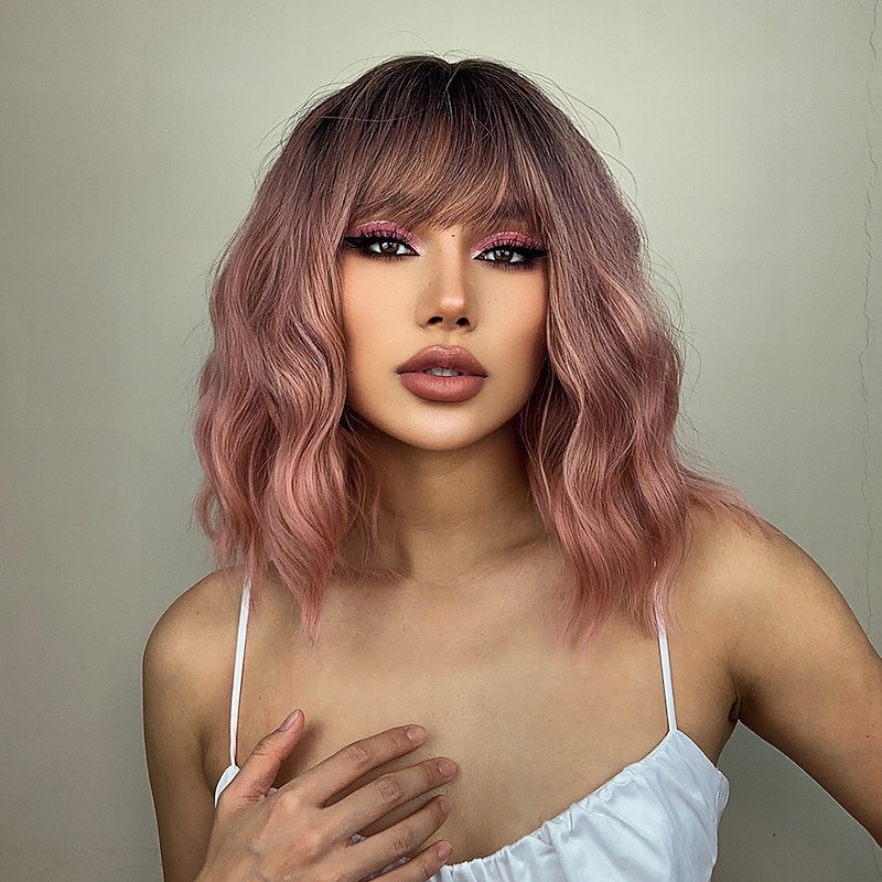 $24.99 - HAIRCUBE Blonde Hair Body Wavy Synthetic Wigs With Bangs Auburn Pink Cosplay Wigs for White Women 2025. Shop for cheap Synthetic Trendy Wigs online? Buy at lightinthebox.com on sale today!