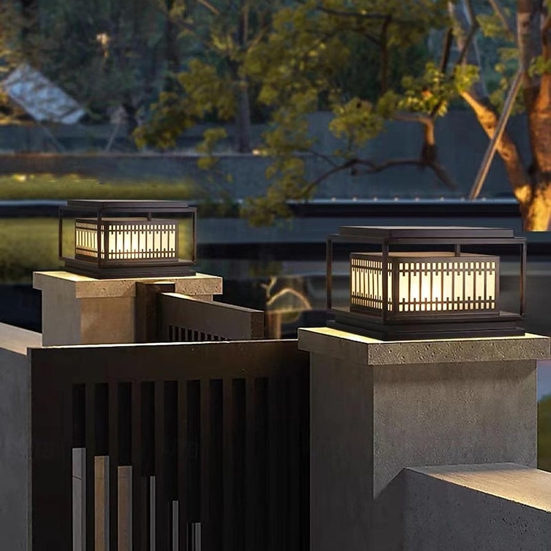 Modern Post Light Fixture Waterproof Landscape Path Lights E27 Deck Fence Post Cap Lamp with Acrylic Shade Square Galvanized Sheet Pillar Lamp 110-240V 9