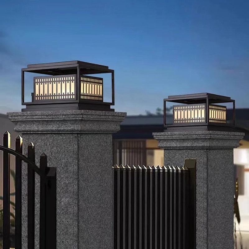 HOT ! Modern Post Light Fixture Waterproof Landscape Path Lights E27 Deck Fence Post Cap Lamp with Acrylic Shade Square Galvanized Sheet Pillar Lamp 110-240V