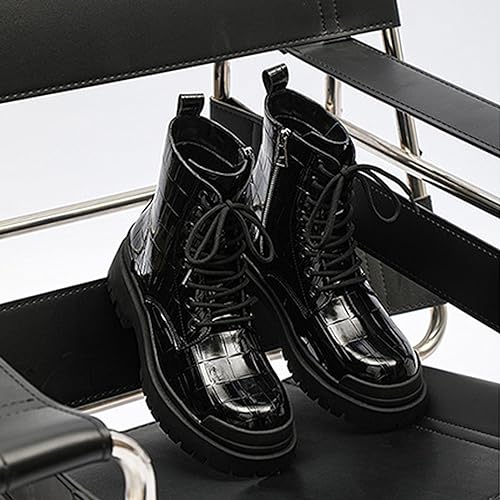 Ephirebra Men's Leather Platform Ankle Boots Lace Up Side Zipper Round Toe High Top Punk Boots Business Work Fashion Dress Shoes 6
