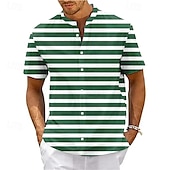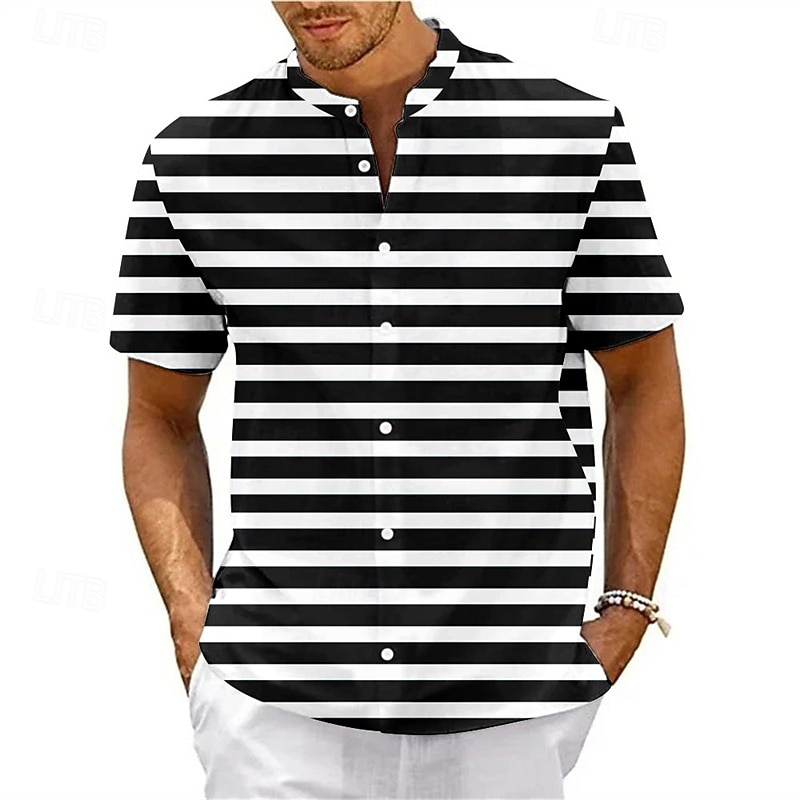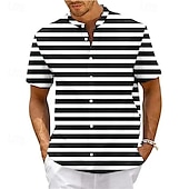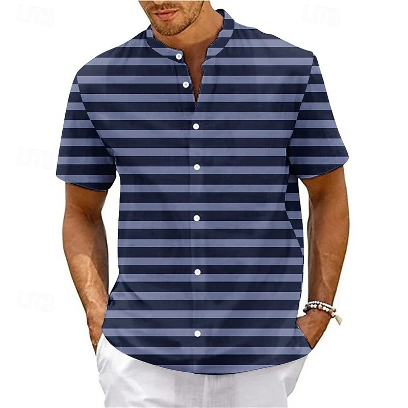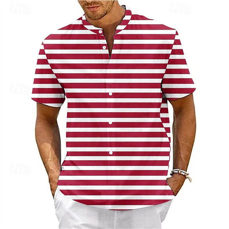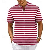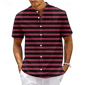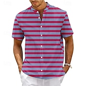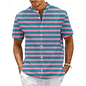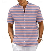 More information about Men's Shirt Summer Shirt Casual Shirt Beach Shirt Button Up Shirt Light Pink Black Pink Red Royal Blue Short Sleeve Stripes Band Collar Vacation Hawaiian Clothing Apparel Polyester Fashion Casual