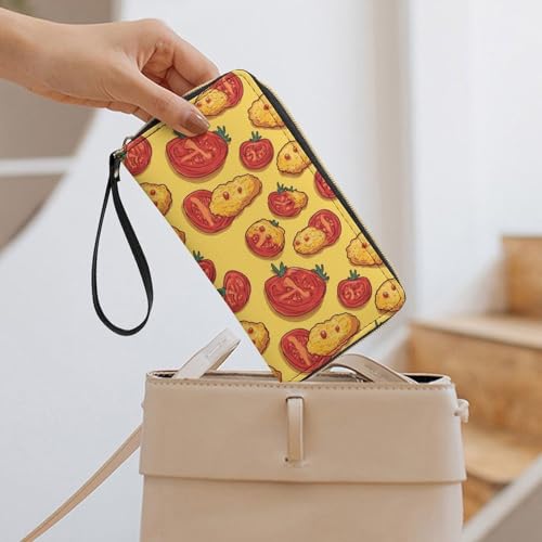 Funny Chicken Nuggets Leather Wallets for Women Large Capacity Zip Pocket Wallet with Cord 7