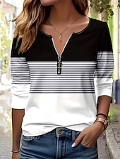 More information about Women's T Shirt Graphic Geometric Striped Elegant Vintage Stylish Long Sleeve Round Neck Notched Neck Regular Tops Daily Weekend Zipper Print Black and White Spring Fall Winter