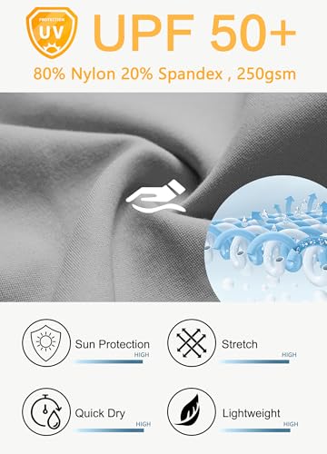 • Fabric type: 80% Nylon, 20% Spandex(UPF50+/Quick Dry/4-Way Stretch)