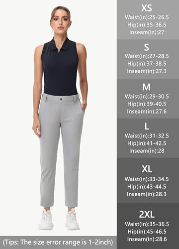 HOT ! Women's Stretch Golf Pant - 7/8 Ankle Work Travel Teacher Casual Business Sweatpants with Belt Loops Nylon Fabric UPF50