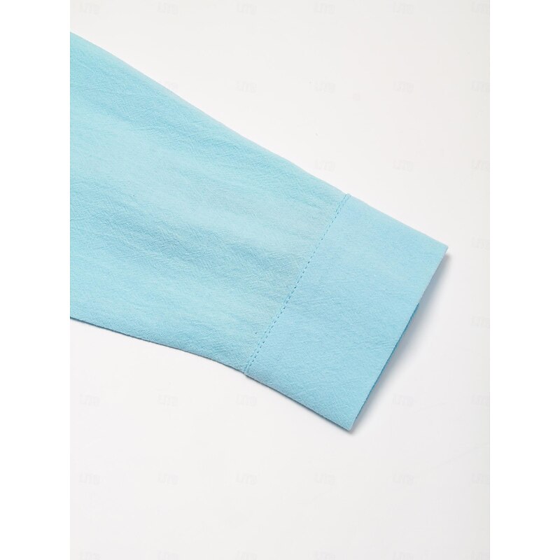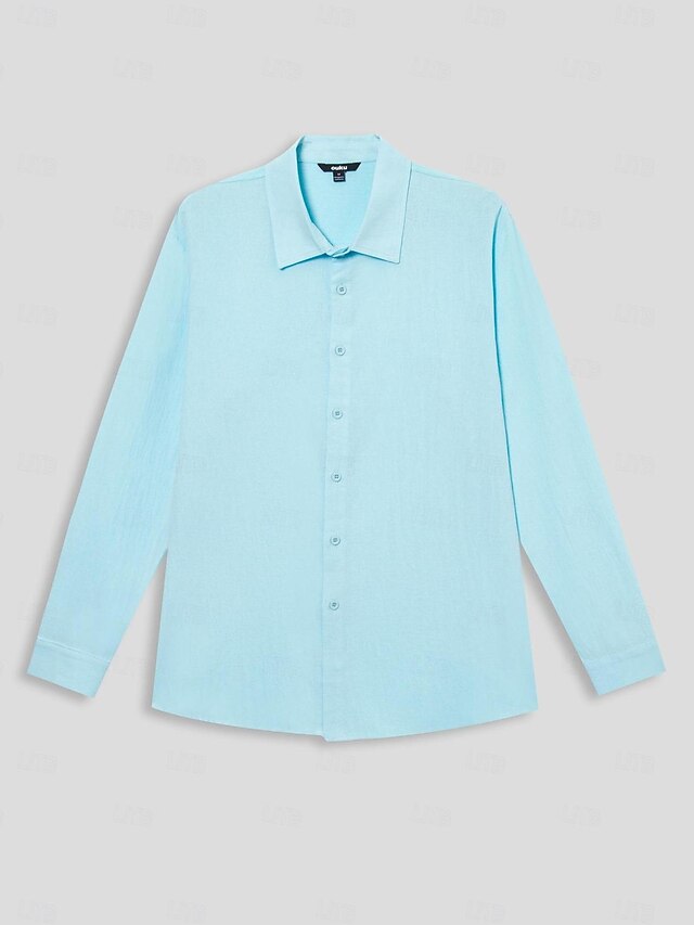 More information about Men's Shirt Linen Shirt Summer Shirt Beach Wear Button Up Shirt Plain Vacation Casual Blue Long Sleeve Lapel Spring & Fall Clothing Apparel